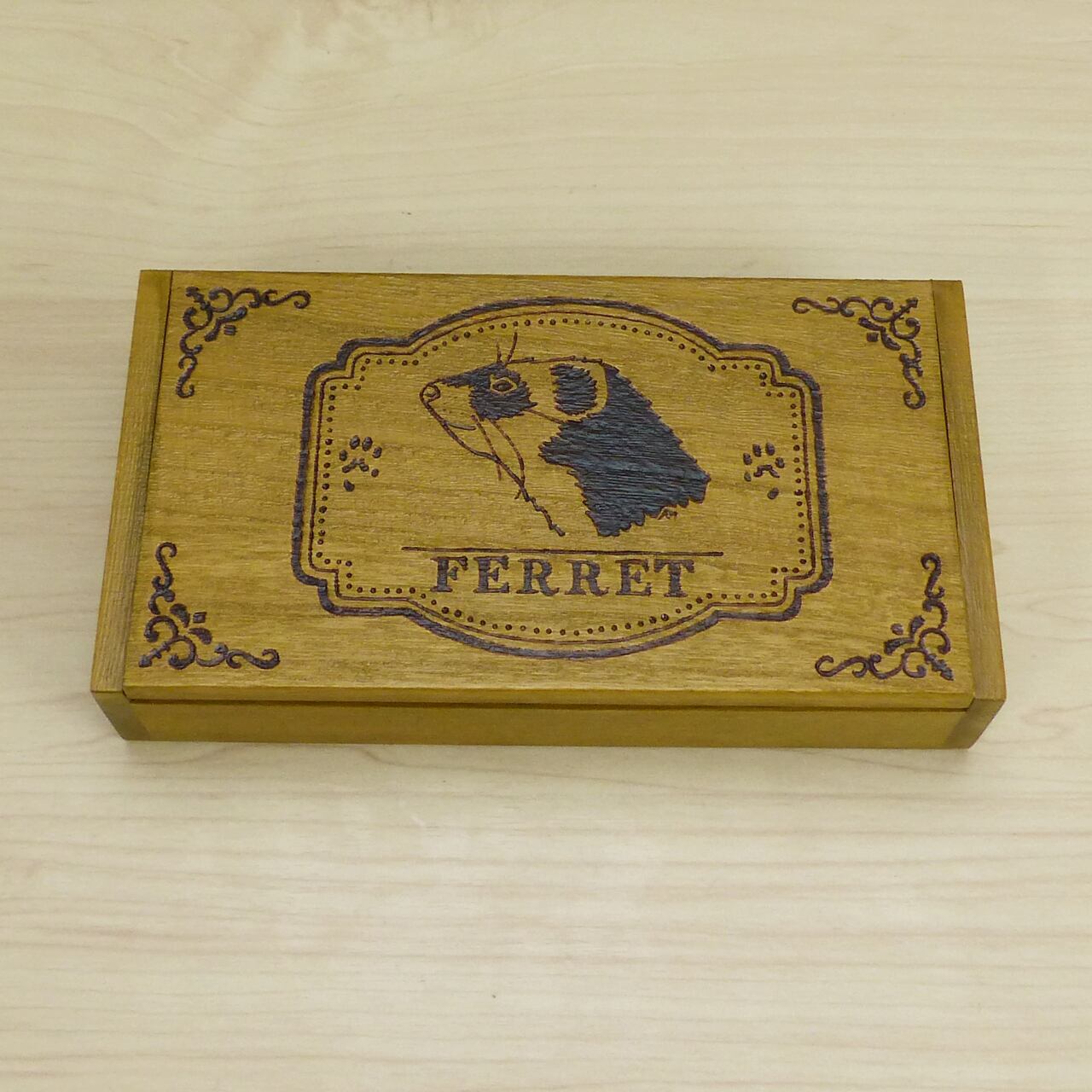 桐製の木箱に焼き絵をした作品になります。