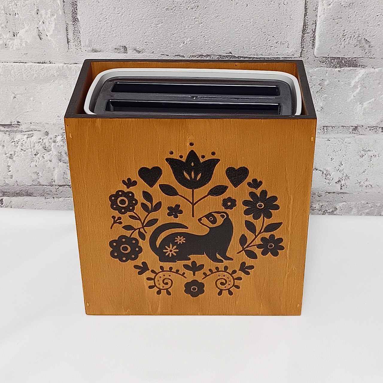 かわいいフェレットのシルエットを焼き絵したミニダストボックスです。